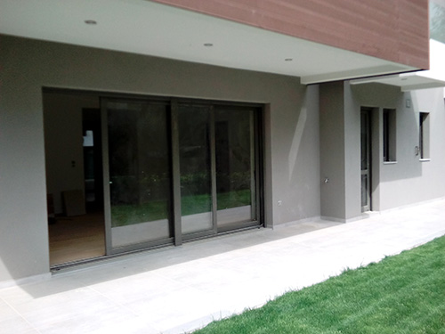 Κατασκευή Κουφωμάτων αλουμινίου (Alumil S350 συρόμενα - M9660 ανοιγόμενα), ρολών (Alumil M13800) και σκιάστρων (ιδιοκατασκευή).